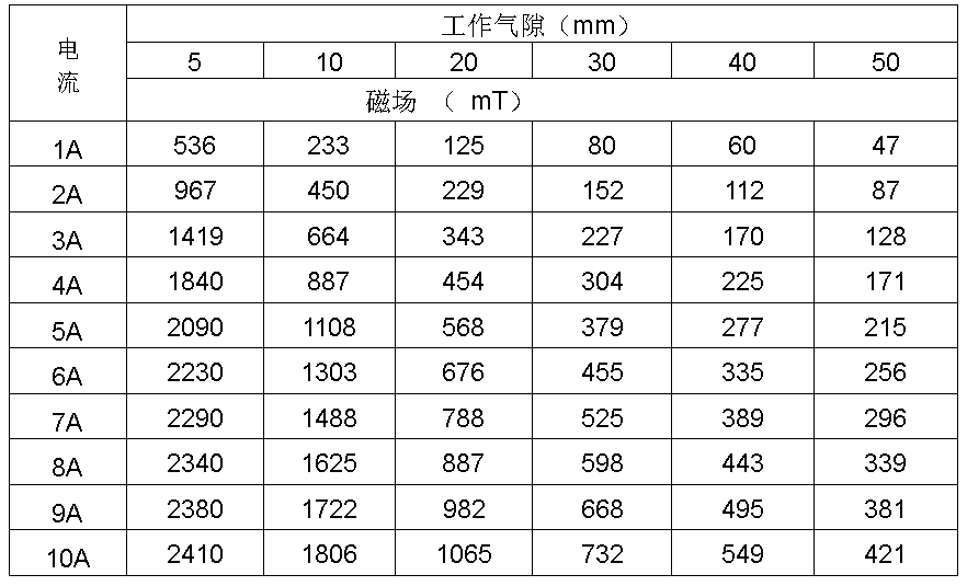 最大磁場 :工作氣隙5mm時(shí),H≥2T